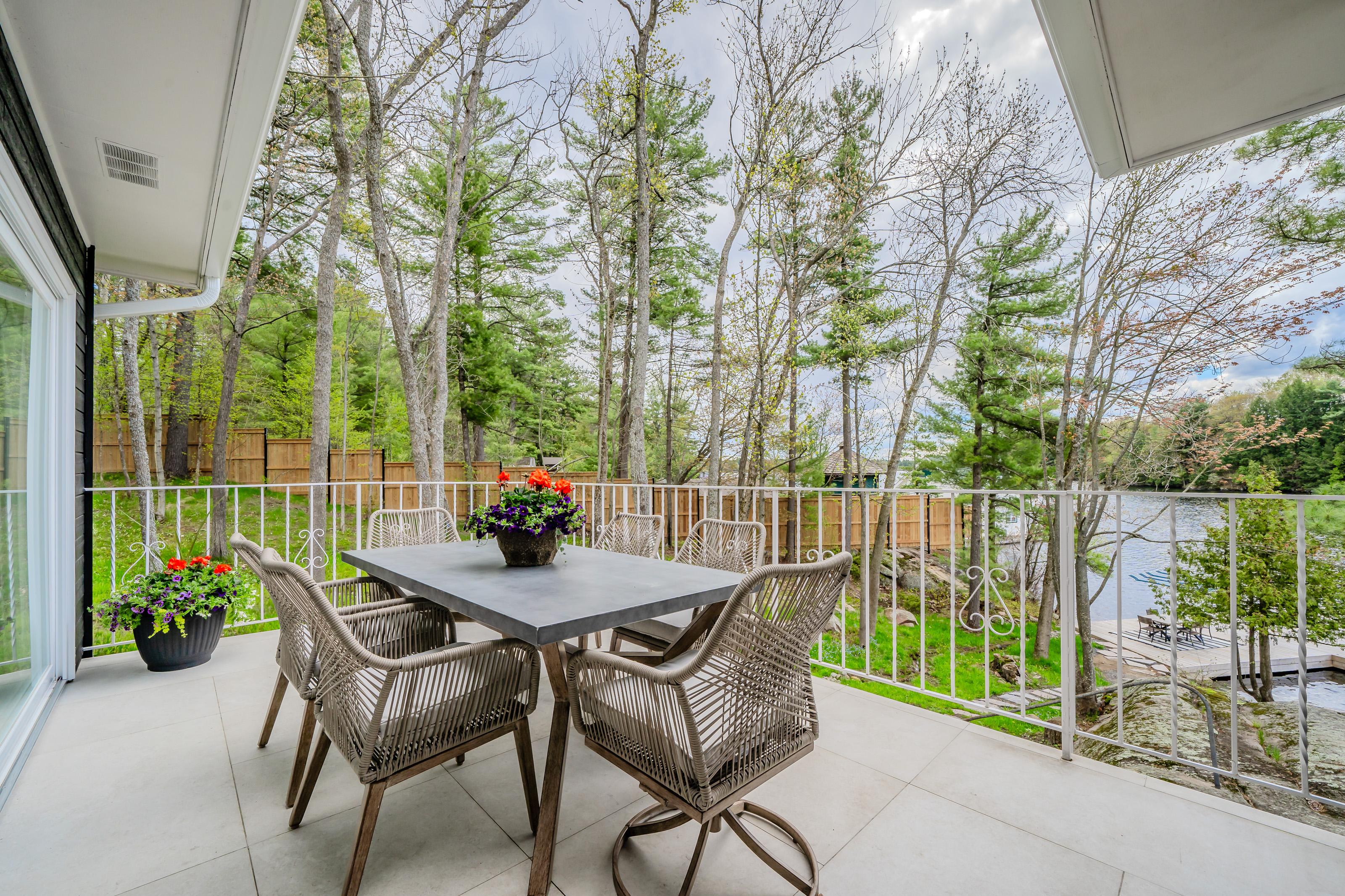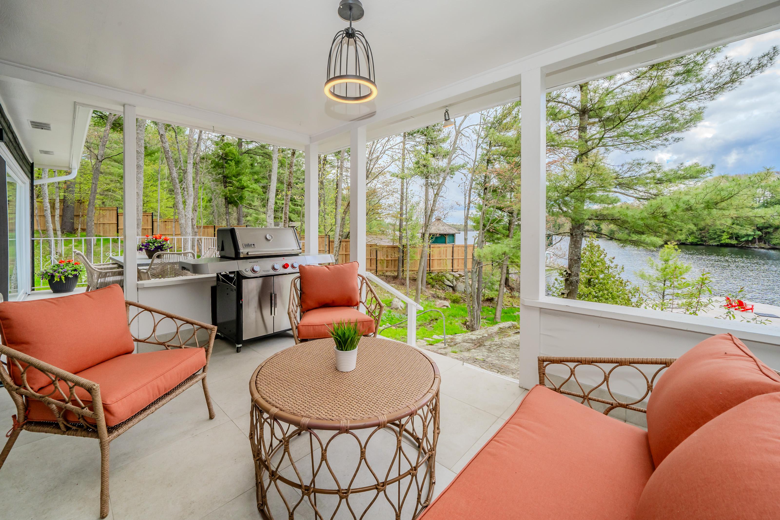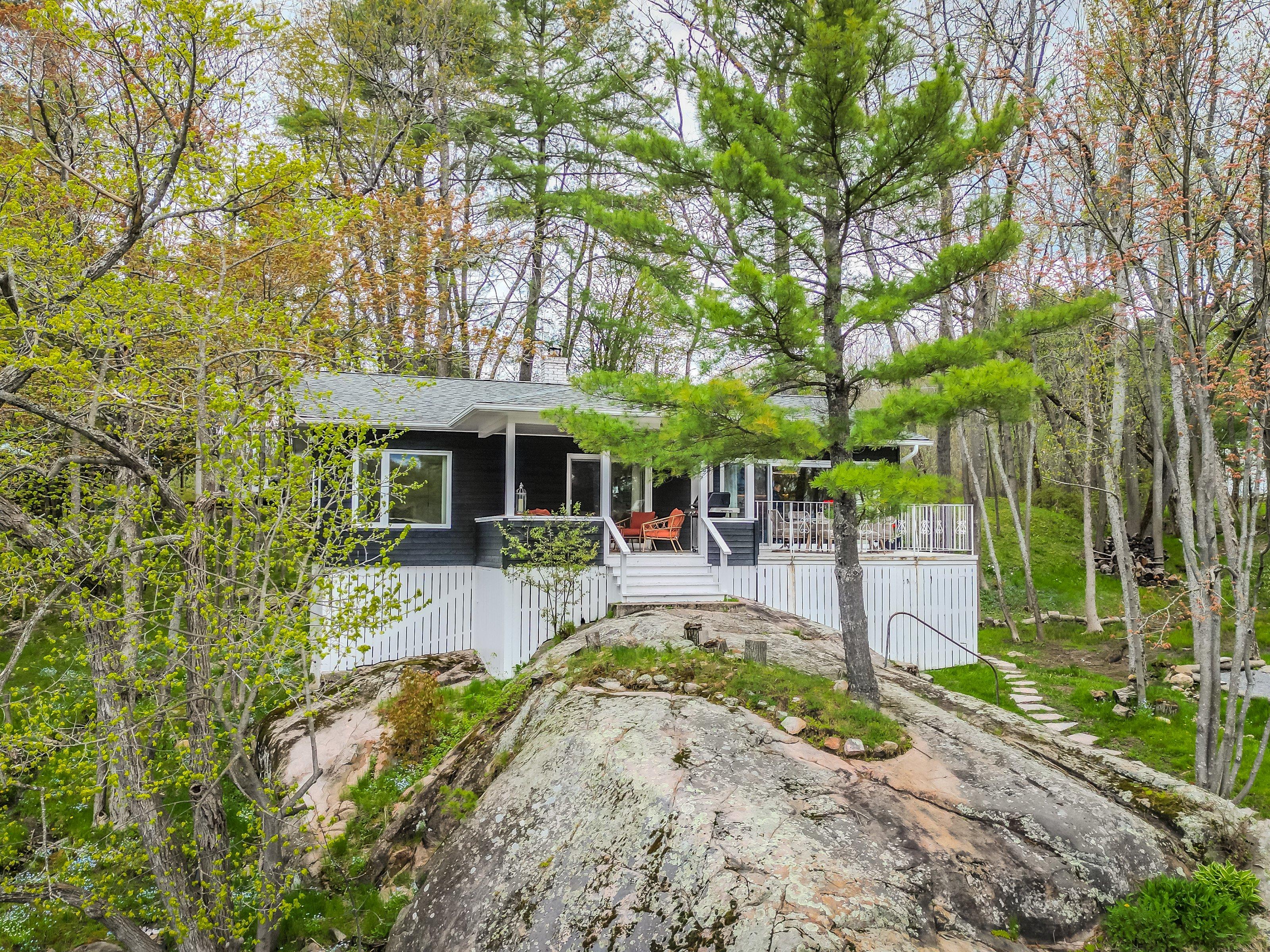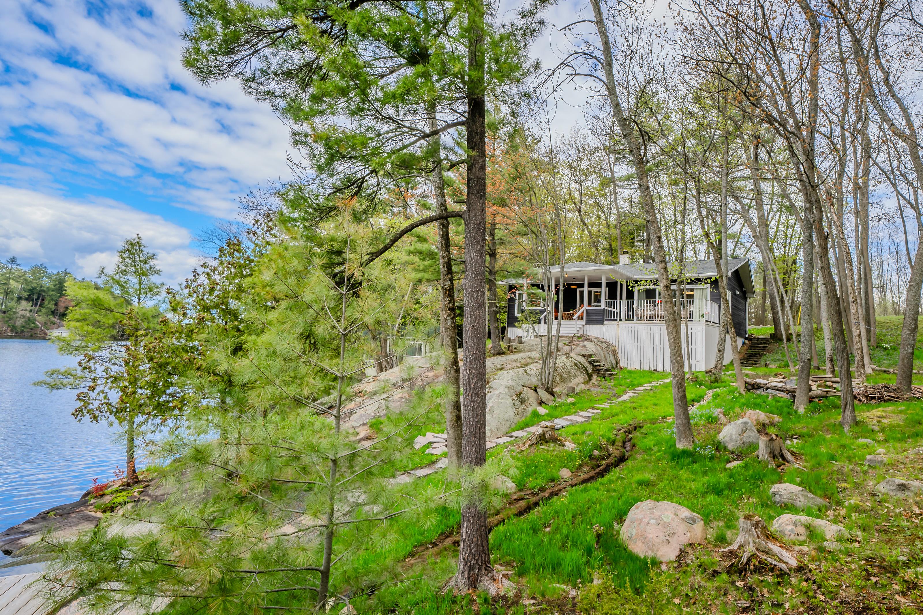 Discover the pinnacle of lakefront living with this beautifully renovated 3-bedroom, 2-bathroom year-round cottage located on the prestigious "Golden Shore" of Lake Muskoka. With stunning southwest exposure, enjoy sun-filled days from your dock, sunsets over the lake, and the ultimate Muskoka lifestyle. Set on the historic grounds of the former Milford Manor Resort, this property is steeped in Muskoka tradition and charm. This contemporary open-concept cottage features a seamless flow between the kitchen, dining, and living spaces - perfect for entertaining or relaxing with family. Large windows invite panoramic lake views, while modern finishes and thoughtful design details elevate the homes comfort and style. Step out onto the lakeside deck for Al Fresco dining or enjoy your morning coffee on the covered porch as the tranquil sounds of the water greet your day. A newly constructed, expansive dock with steel piers is ready for your future boathouse (drawings and permit available), and offers ample space for docking, swimming, and lounging. Set on a gently sloping, landscaped lot surrounded by iconic granite outcroppings and majestic pines, the property also features a fire pit - ideal for cozy evenings under the stars. Located just minutes from Port Carling and Bracebridge, and only a 5-minute walk to the scenic Huckleberry Rock Lookout Trail, this property offers both privacy and proximity to Muskoka's best amenities. Enjoy nearby luxury at Touchstone Resort or explore the many local shops and restaurants. Whether you're seeking peaceful solitude, outdoor adventure, or a place to gather with family & friends, this turnkey property checks every box! Located in the sought-after Beaumaris / Milford Bay area, this rare offering is an opportunity to create unforgettable Muskoka memories. Start your summer here.... where peace, privacy, and potential await you on Lake Muskoka!